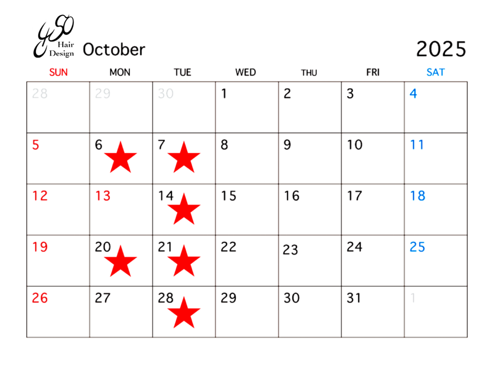 10月 定休日